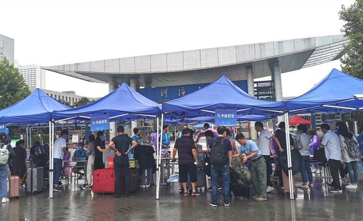 为全面做好疫情防控和迎新工作,学校组织了由在校生组成的志愿者队伍。志愿者们早早地等候在校园门口,热情的为新生答疑解惑、搬运行李,为他们顺利报道保驾护航。同时为方便新生出行,学校精心准备了摆渡车接送。