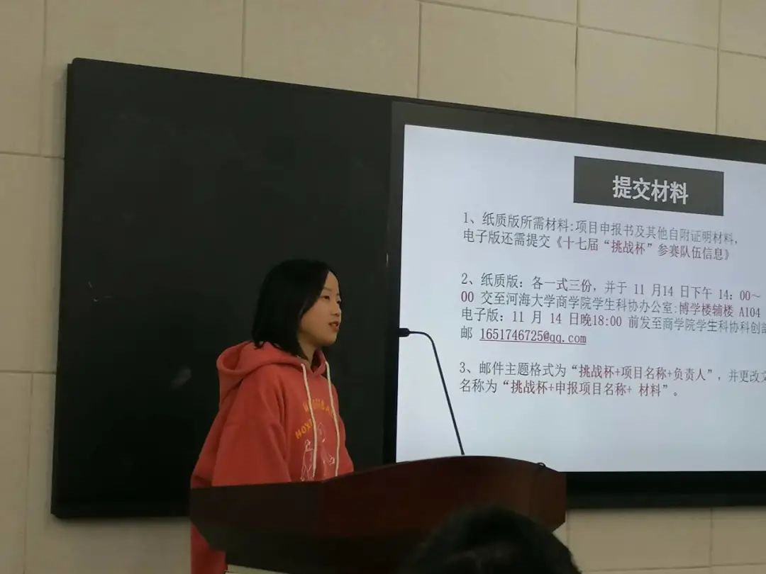 随后电影先生 学生科协的郑佳慧同学针对大赛要求和本次电影先生 院内赛流程进行了讲解,向同学们介绍了项目申报注意事项、作品类别、参赛要求和面向对象等。