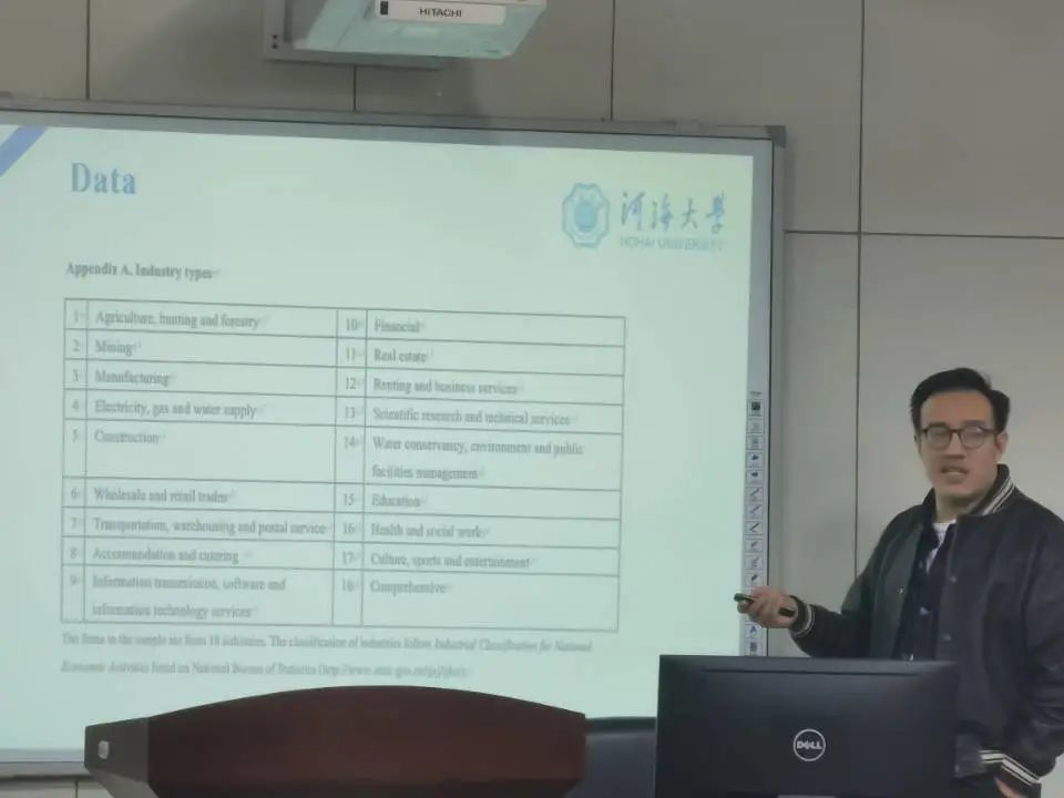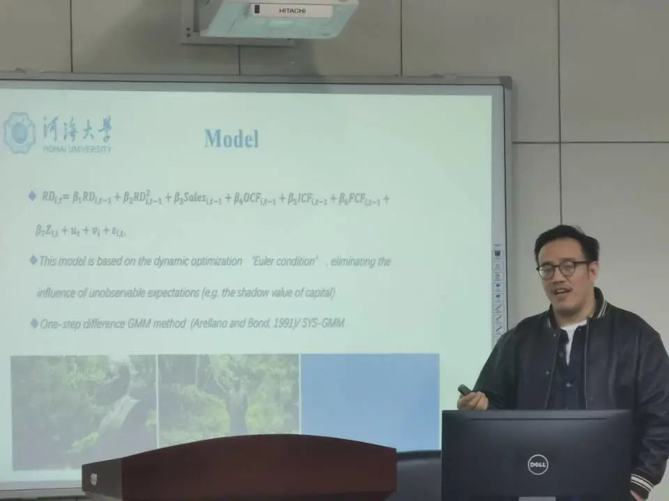 紧接着,卢老师抓住学生较为关心的在没有融资约束下的投资问题,深入分析,卢老师先简单介绍了研发活动的内在结构与内在的问题,并交代了研发活动的特征,如研发活动的周期性、大风险性、不可逆性等,并基于这些特征,对大小企业面对研发活动与融资行为的差异进行了比较,更深入地分析研发活动内容,学生们兴趣盎然。