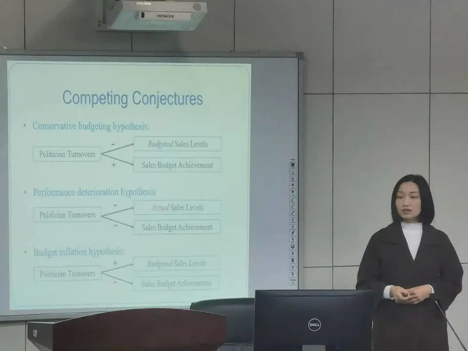 最后,杨老师通过最终的结果分析,分别对之前提出的三种竞争性假说进行验证。最终,确定第二个假说具有实际参考意义,即在官员变动下,企业会夸大预算的水平。学生们也对此有了大致的认知,并积极地思考,理解该假说的含义。