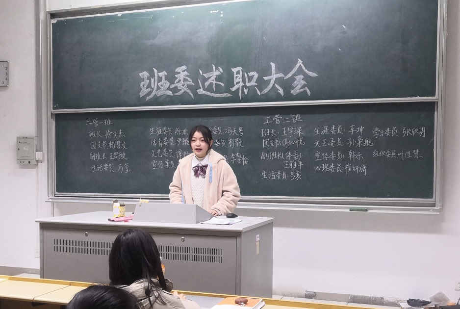 国贸三班班长吴文清在述职中带领同学们一起回顾了本学期班级举行的各项活动。看到大家从开学时的素不相识到如今的齐心协力、互助友爱,吴文清表示颇有感触。班长的职责主要在于组织和领导,同时也要担起为班级服务的责任。吴文清也对自己之前工作中存在的问题进行了总结与反思,对之后的班级发展提出了详细的目标和计划。