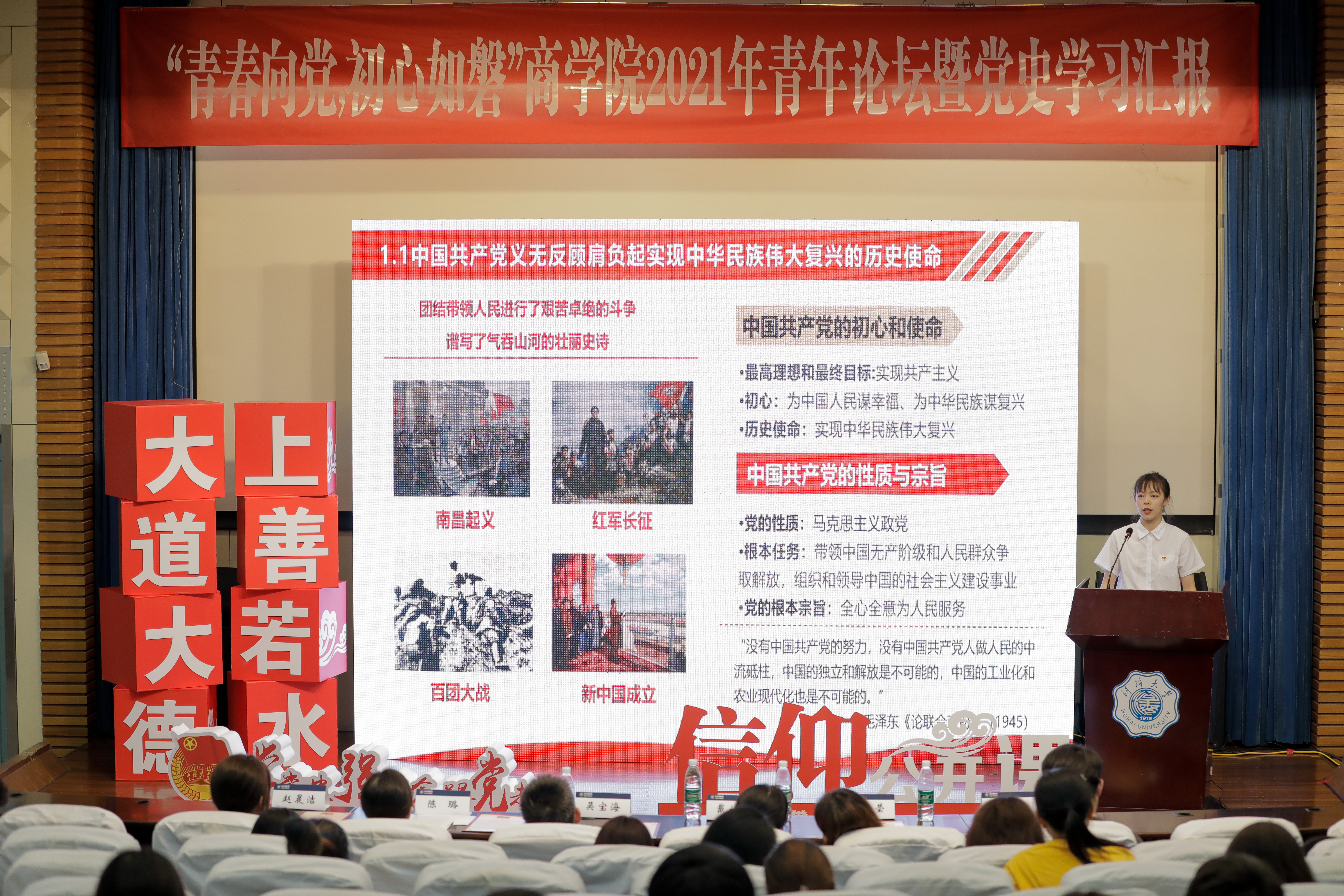 2021年6月17日,学院举办“青春向党,初心如磐”2021年青年论坛暨党史学习汇报活动。学院党委书记吴宝海、党委副书记戴媛媛、团委书记陈璐、各年级辅导员以及学院全体学生骨干参加活动。