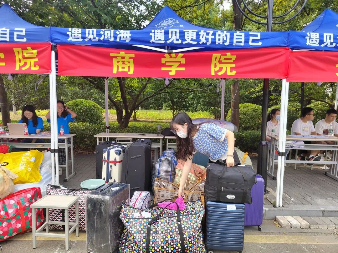为全面做好疫情防控和迎新工作,参与迎新的志愿者们早早地等候在校园门口,设置好迎新点和行李安置点,主动帮助新生搬运行李送往宿舍,带领新生们报到注册,随时随地为新生送上贴心、温暖的帮助。为方便新生搬运行李,学校还特地准备了流水班车接送。