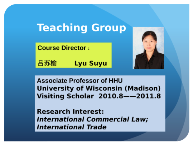 经过严格的评审和精心的开发建设工作,电影先生 吕苏榆副教授的《国际商法/International Commercial Law》课程成功入选首批江苏高校省级外国留学生英文授课精品课程在线开放课程,即将在省课程网平台上线。本次同批入选的共有来自全省13所高校的15门课程。