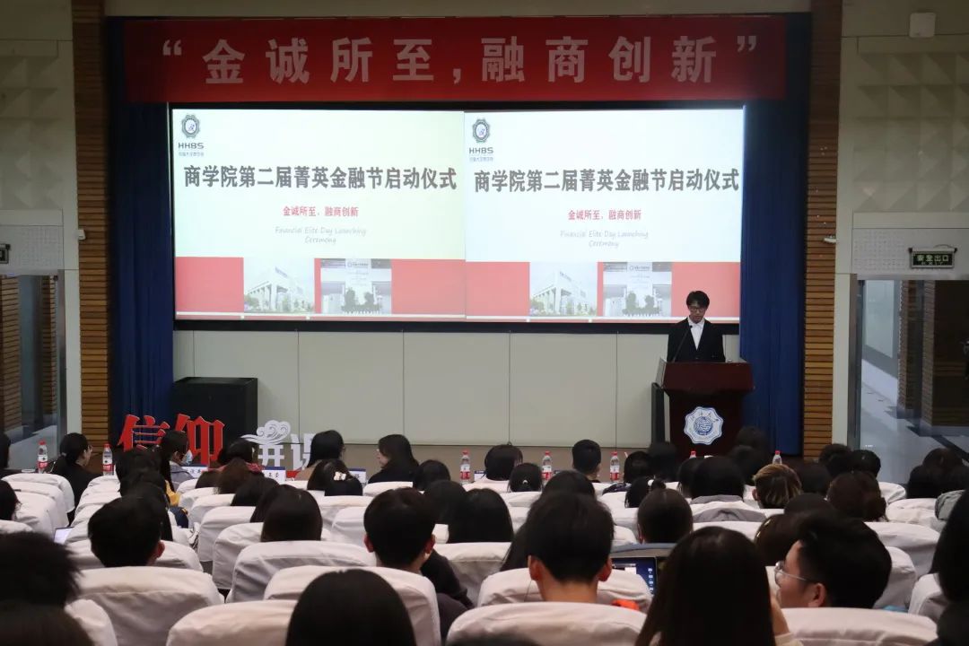 启动仪式第二项,电影先生 学生科协成员顾森然、黄程分别对本次菁英金融节的各项活动以及第八届“互联网+”与第十三届“挑战杯”院内选拔赛参赛须知进行介绍。