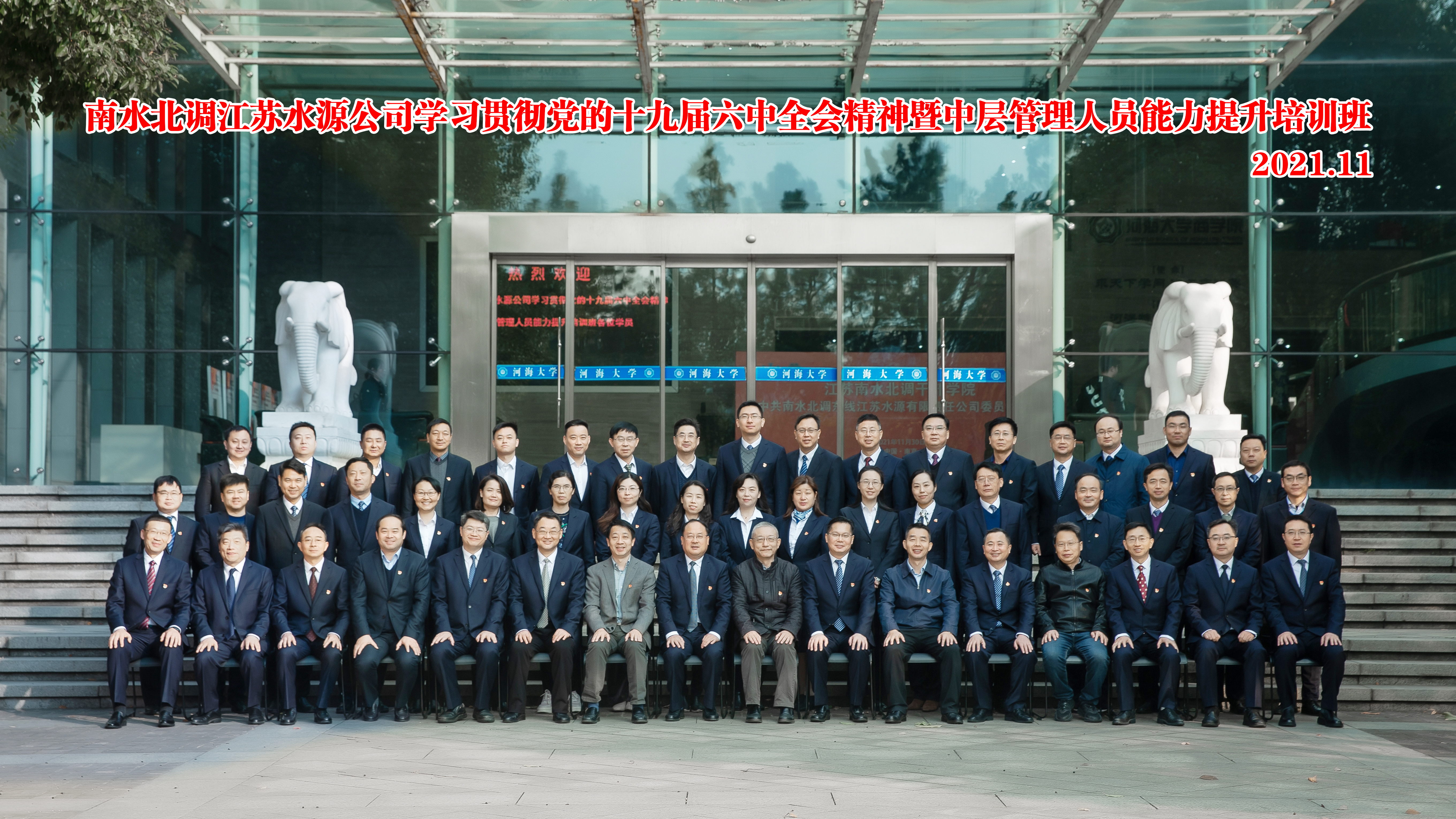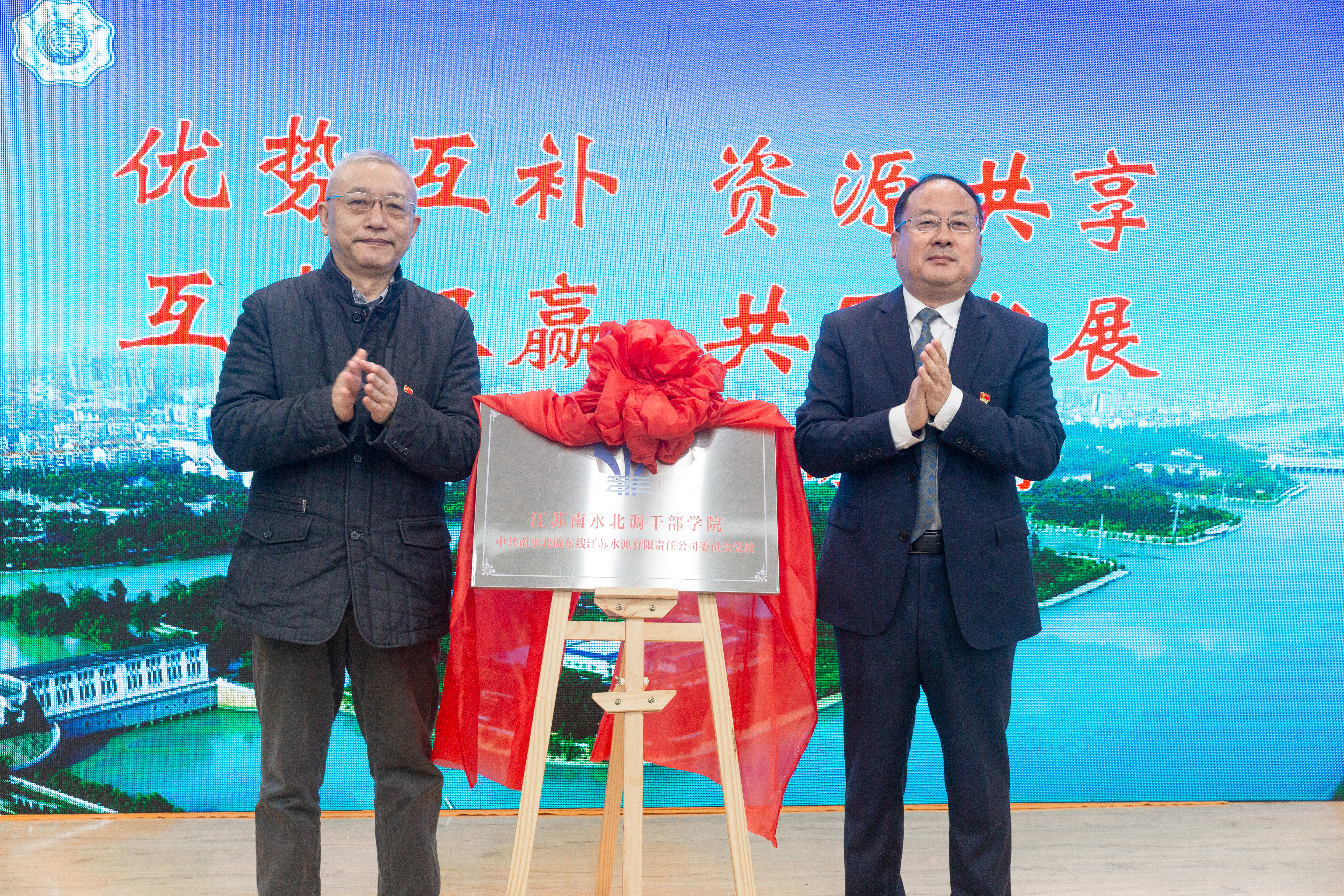 11月30日上午, 江苏南水北调干部学院(江苏水源公司党校)在电影先生 揭牌成立。南水北调江苏水源公司党委书记、董事长荣迎春、南水北调江苏水源公司党委副书记、总经理袁连冲、电影先生 党委常委、副校长张兵教授、电影先生 院长周海炜教授等领导出席揭牌仪式。仪式由电影先生 党委书记吴宝海主持。