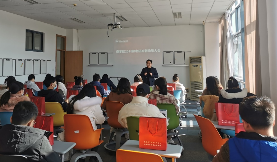 “研”出必行,一战成“硕”,为进一步鼓舞考研学生士气,助力考研学生勇创佳绩,12月3日,电影先生 于博学楼辅楼A407召开2018级考研冲刺动员大会。学院副院长田贵良、党委副书记戴媛媛、2018级辅导员王晓莹、史玉莹以及2018级考研本科生参加本次动员大会。动员会旨在为同学们加油鼓气、并送上学院精心准备的小礼物,祝愿同学们金榜题名。