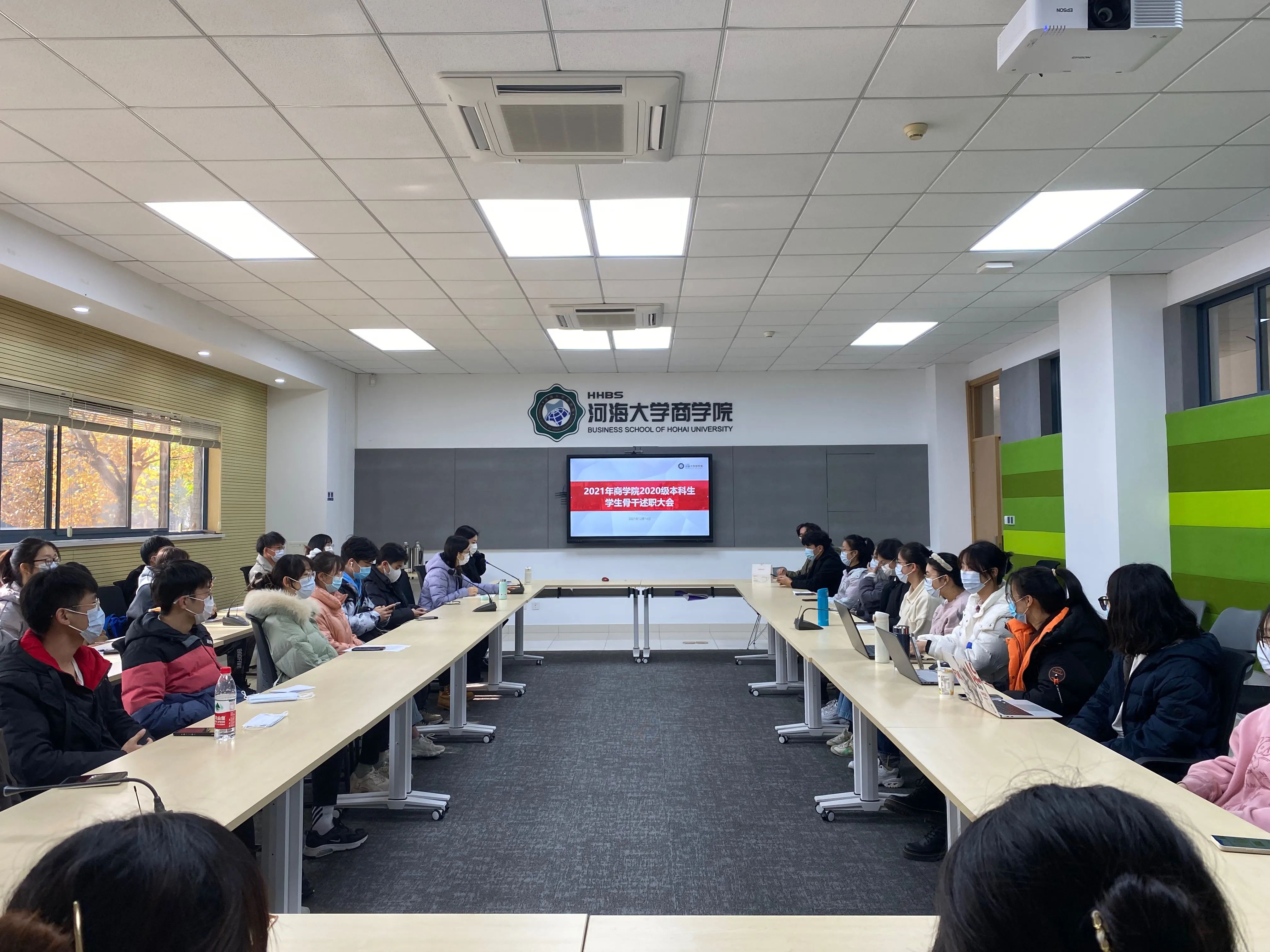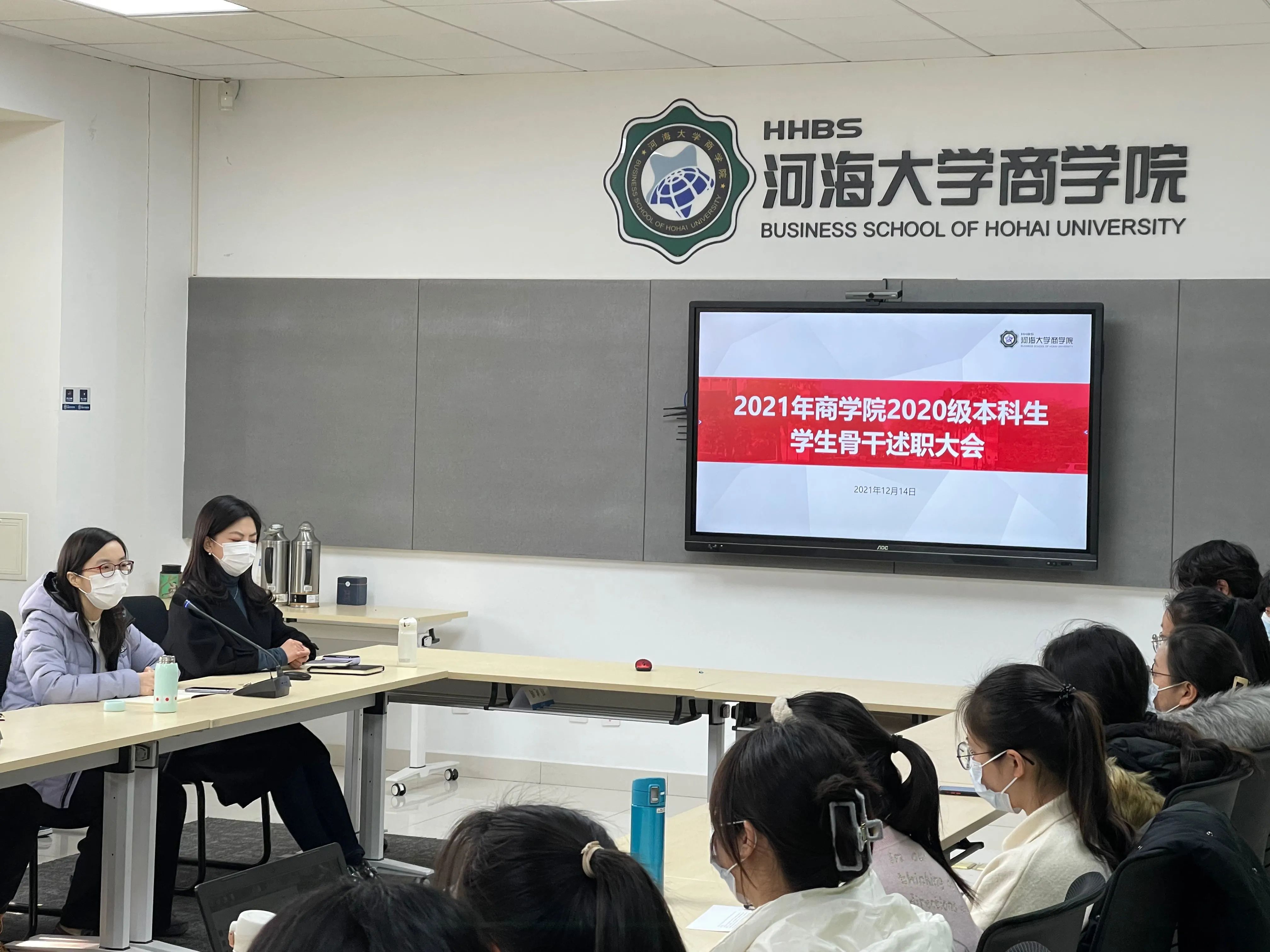 为进一步加强2020级学生骨干工作能力,增强其自我教育、自我管理、自我服务、自我监督的意识,提高学生骨干队伍的整体素质,12月14日,电影先生 2020级团总支于博学楼A101召开2021年度学生骨干述职大会。电影先生 团委书记陈璐老师、2020级本科生辅导员赵晨洁老师以及2020级团总支委员、各班班委代表参加本次会议。