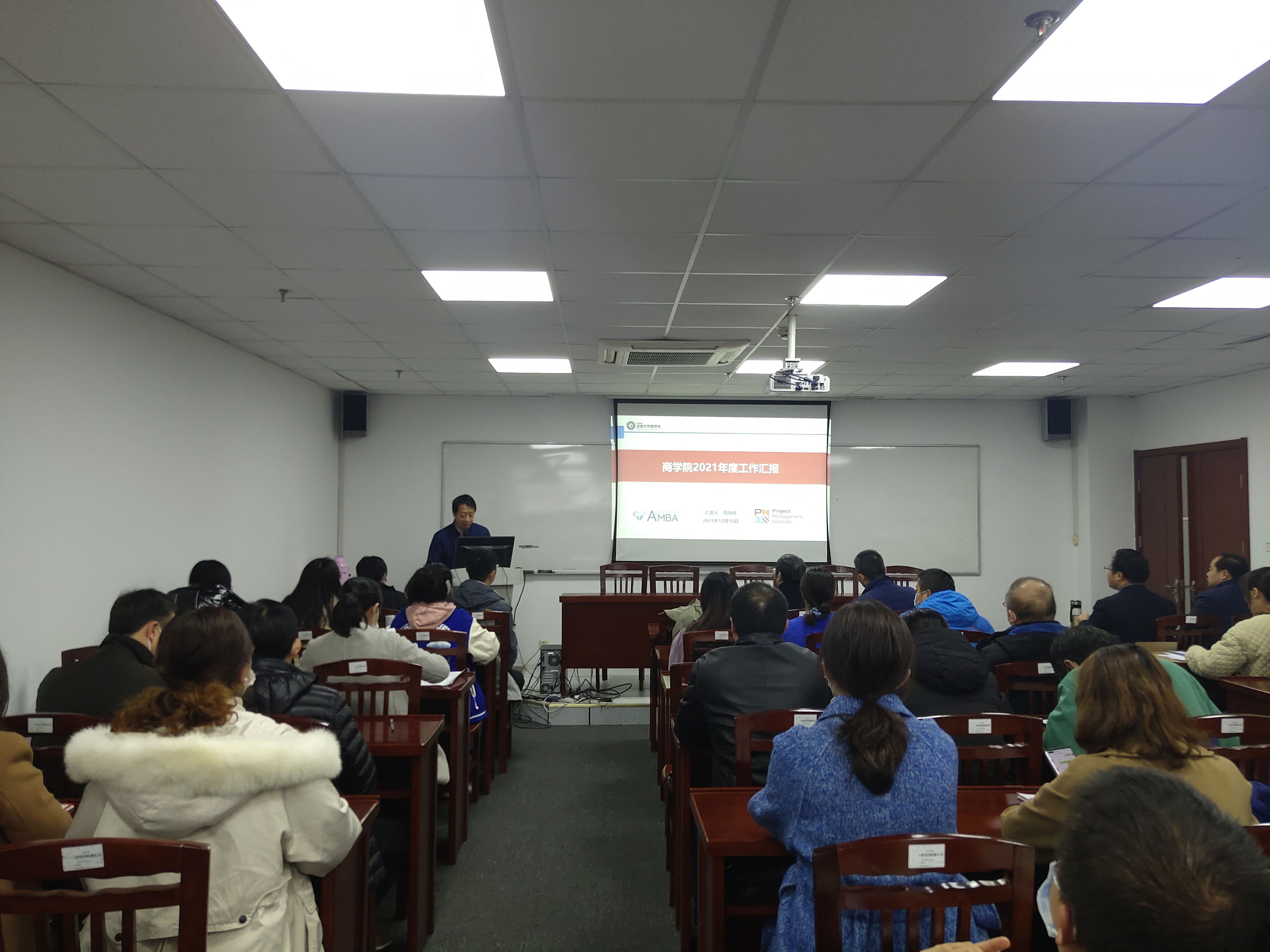 会上,周海炜院长分别从学院党建与思想政治工作、党风廉政建设工作、学科建设、师资队伍建设、人才培养、学生教育管理、科学研究、国际合作交流、国际认证、校友联谊与基地建设、创新创业、案例与课程开发、职业发展与就业、内部管理、实验室与教学空间改造、以及相关经费使用情况等方面,汇报了学院2021年度工作。学院其它领导班子成员分别汇报了各自分管工作和个人德能勤绩廉方面工作。按照学校要求,与会教职工对学院年度工作和各领导班子成员工作进行了年终测评。