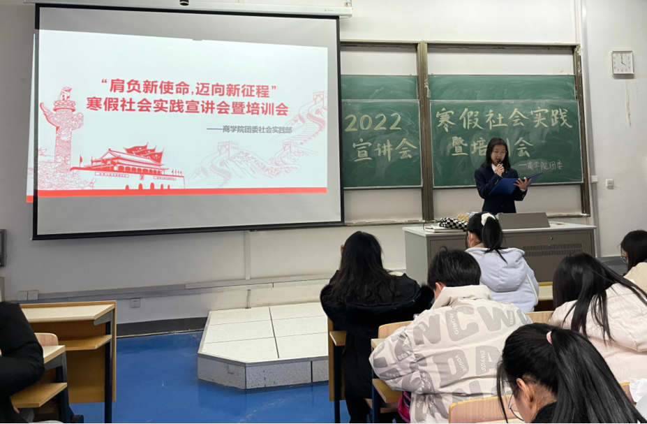 为使同学们更进一步了解寒假社会实践相关要求,帮助同学们做好寒假社会实践准备,2021年12月30日,电影先生 团委社会实践部于为学楼B202举办了“肩负新使命,迈向新征程”寒假社会实践宣讲会暨培训会。本次宣讲会分别邀请到了寒假优秀社会实践负责人——沈艳阳同学和刘思薇同学分享他们的社会实践经验。