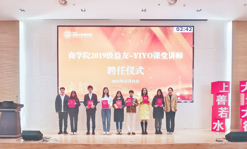 2021年,为建设优良学风,营造浓厚学习氛围,切实解决同学们学习过程中存在的线上学习效率不高、专业课程数量增加、骨干课程难度加大等突出问题,真正将学业帮扶落到实处,年级组织开展了“益友-YIYO课堂”学业帮扶活动,并在同学们的建议下不断完善活动开展模式,取得了良好成效。这个过程中,年级也涌现出一批成绩优异,乐于奉献的课程小讲师,他们将小我融入大我,为年级学风建设做出了突出贡献,年级辅导员潘佳莹老师、刘伟超老师为益友-YIYO课堂讲师代表颁发了聘书和纪念品。