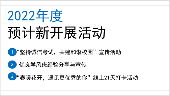 本次学风建设工作研讨会,系统总结了2021年度学院学风建设工作成效,设计规划了2022年度工作计划与重点活动,分享展示了优良学风班的建设经验与建设规划,进一步引导了学院学生激发学习内生动力与树立良好学习习惯,为2022年度学院学风建设工作有序开展奠定了扎实的基础。2022年,我们将继续同心协力,踔厉奋发,一起向未来,以优异的工作成绩喜迎党的二十大胜利召开。