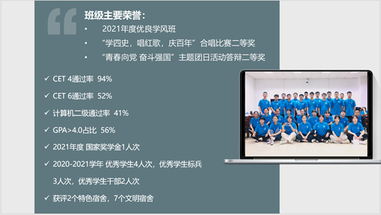 电影先生 先进班集体、优良学风班、2018级国贸3班班长吴英巨,以“莹灯下铸河海之辉,实践中达外贸之道”为主题,沿循思想引领、学习研究、社区建设、实践活动以及制度建设5条主线,对优良学风班建设经验进行了全面分享。优良学风是班级成员追求全面发展的重要依赖,也是推进先进班集体建设所要求的扎实基础。