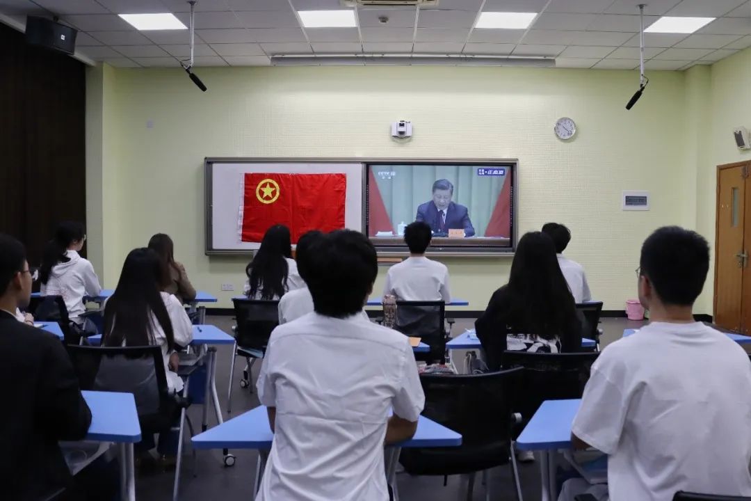 值此中国共产主义青年团成立100周年之际,电影先生 师生代表于5月10日上午10时齐聚博学楼A101,共同观看庆祝中国共产主义青年团成立100周年大会直播,认真聆听和学习习近平总书记重要讲话。学院3000余名团员青年认真观看庆祝大会、学习习近平总书记重要讲话精神,同学们倍感振奋、倍受鼓舞,对习近平总书记的讲话内容反响强烈,纷纷表示要时刻谨记习近平总书记的谆谆教诲。时代各有不同,青春一脉相承。身处新时代的商院团员青年,必将牢记自己作为中国青年运动的先锋队,中国共产党忠实助手和可靠后备军,将坚持党的领导深深融入血脉之中,坚守理想信念的政治之魂,投身民族复兴的奋进之力,以实际行动向伟大光荣正确的党致以青春的敬礼!