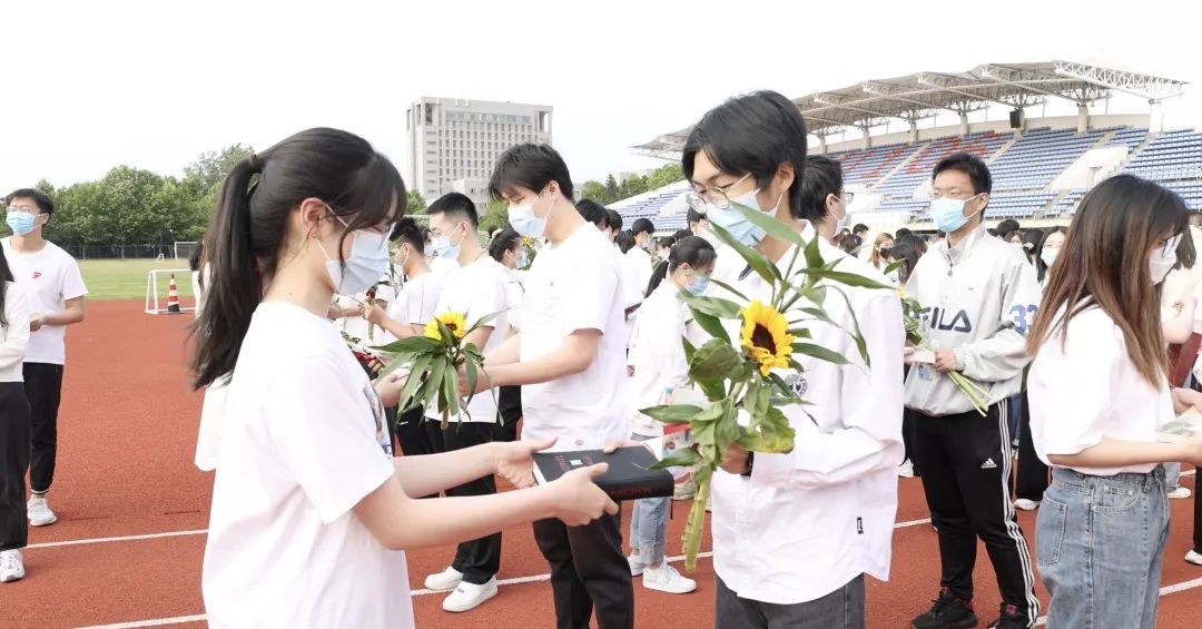 活动最后,2018级党员代表与2021级团员代表互赠礼物,2021级团员以繁花相送,2018级党员回赠书籍,互祝前程似锦,事有可为,来日方长。