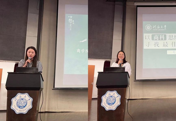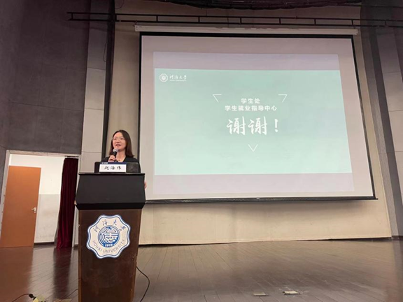 其次,2019级本科生辅导员潘佳莹老师和史玉莹老师从年级基本情况、第一课堂、第二课堂、就业必知四个方面向同学们展开介绍。结合毕业要求告诫同学们立足目标、严守底线。此外基于调查数据,与同学们交流了年级的生涯规划意向情况,并介绍年级考研帮扶举措。史玉莹老师针对应届生就业问题进行了详细说明,包括就业事项须知、秋招宣讲招聘等。更借鉴往年学生求职、考研、考公经验,期望同学们做好求职规划的时间管理。