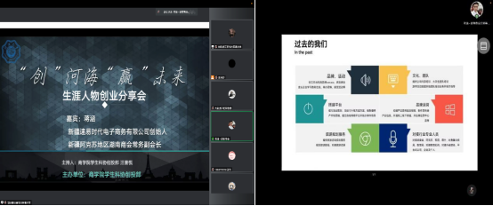 为增强学生的创业意识,提高创业能力,10月15日,电影先生 在线上举办“创”河海,“ 赢”未来生涯人物创业分享会,本次分享会邀请了创业伉俪---学院2017届国际经济与贸易专业校友蒋涵和田苗担任嘉宾。蒋涵现任新疆速易时代电子商务有限公司创始人、新疆阿克苏地区湖南商会常务副会长蒋涵,学院2017届国际经济与贸易专业校友、新疆故土新归文化发展有限公司创始人田苗担任嘉宾。500余名在校生在线参加了本次分享会。