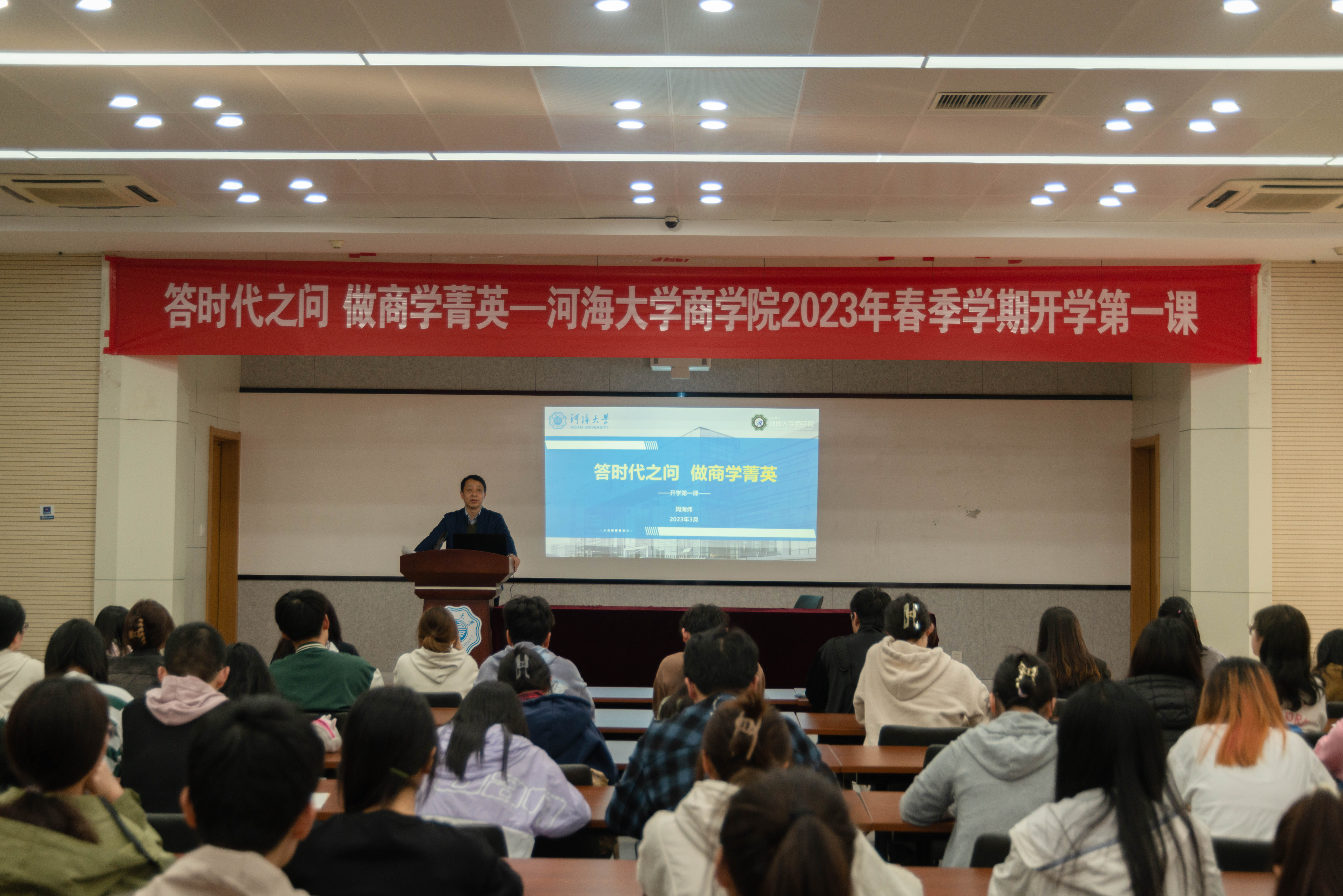 3月9日,电影先生 院长周海炜教授以“答时代之问 做商学菁英”为题,为学院“菁英计划”百名学生讲授2023年春学期开学第一课。