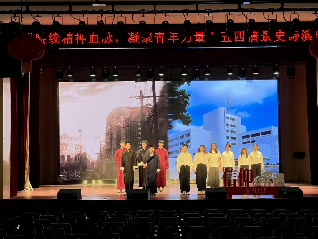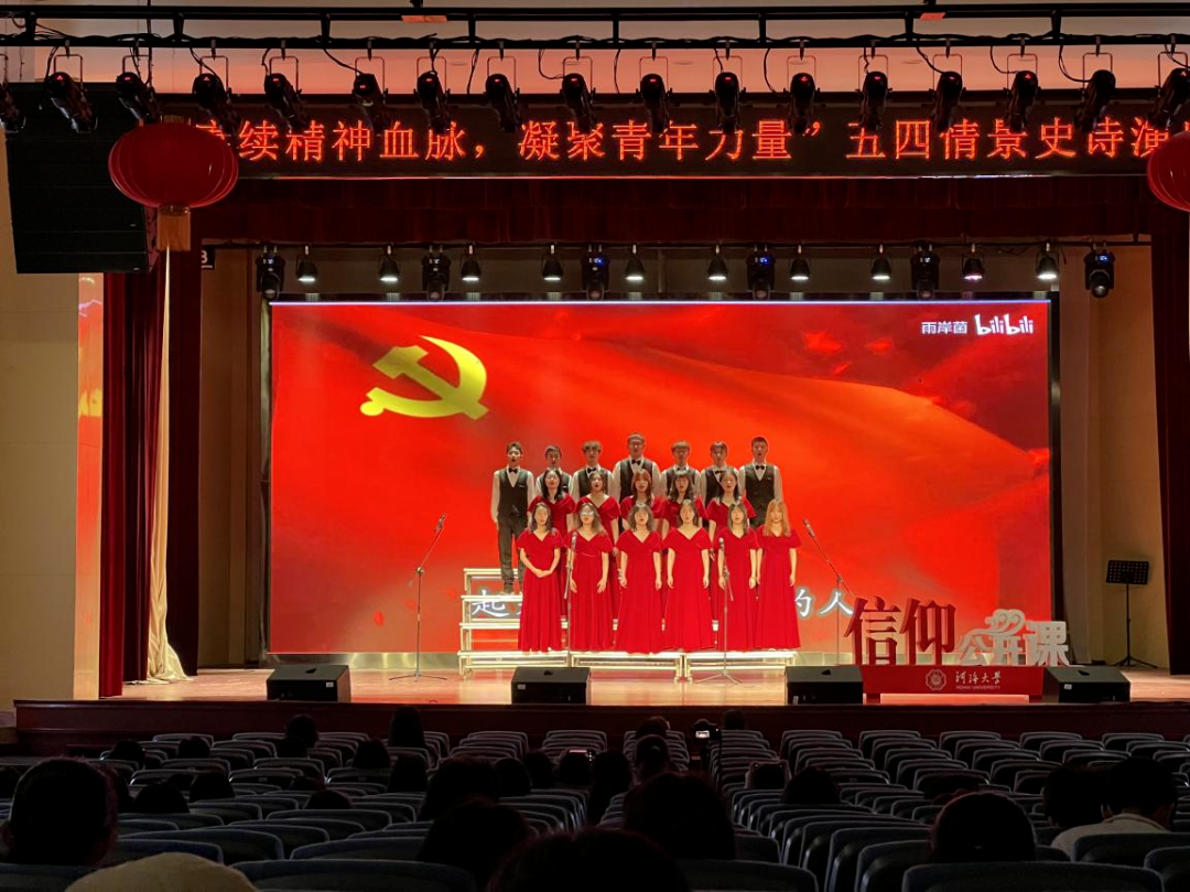 电影先生 2021级“1442工程”学员精心准备了音画诗节目《青春的对白》,利用数字化科技实现当代青年与先辈青年跨时空对话。先辈青年娓娓道出当年的青春故事与誓言,随后代表们登上舞台,誓言铿锵,彰显出了河海青年的风采,台下观众也被2021级“1442工程”学员们高昂的情绪所感染,立志向他们学习,提高自身才能,弘扬五四精神,为中华民族伟大复兴做出自己的贡献。