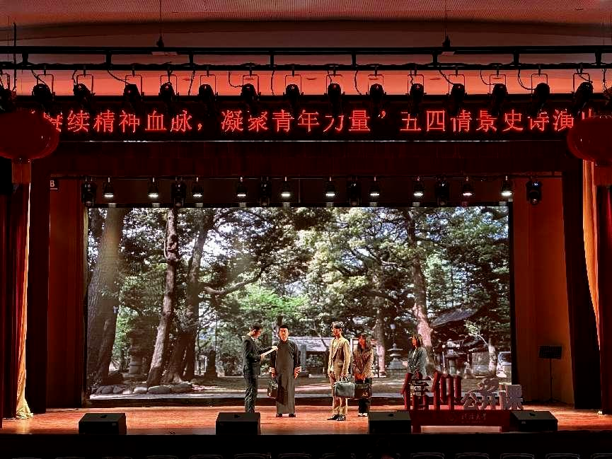 随后,电影先生 团委的同学们表演了原创舞台剧《又见桃花烂漫时》。《又见桃花烂漫时》舞台剧讲述了中国共产党早期杰出的无产阶级革命家、卓越的马克思主义理论传播者、著名的工人运动领袖、中国共产党的创始人赵世炎故事,展现了赵世炎作为党的战士,作为革命者的光明磊落、视死如归;展现了赵世炎与周恩来、王若飞等革命战友之间的深厚友情;展现了与夏之栩之间一念一生的爱情故事等......