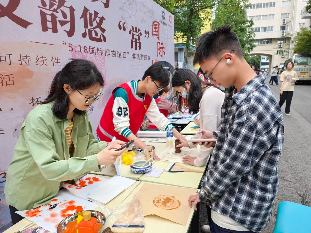 5月18日为国际博物馆日,由国际博物馆协会(ICOM)于1977年发起并创立。这一天世界各地博物馆都将举办各种宣传、纪念活动,庆祝自己的节日,让更多的人了解博物馆,更好地发挥博物馆的社会功能。5月18日中午,电影先生 团委、常州博物馆在电影先生 常州校区联合举办了“博物搴芳 文韵悠‘常’”5·18国际博物馆日——非遗体验游园会,以非遗游园会的形式让同学们更加深入地了解常州的历史和文化,感受非遗之美。