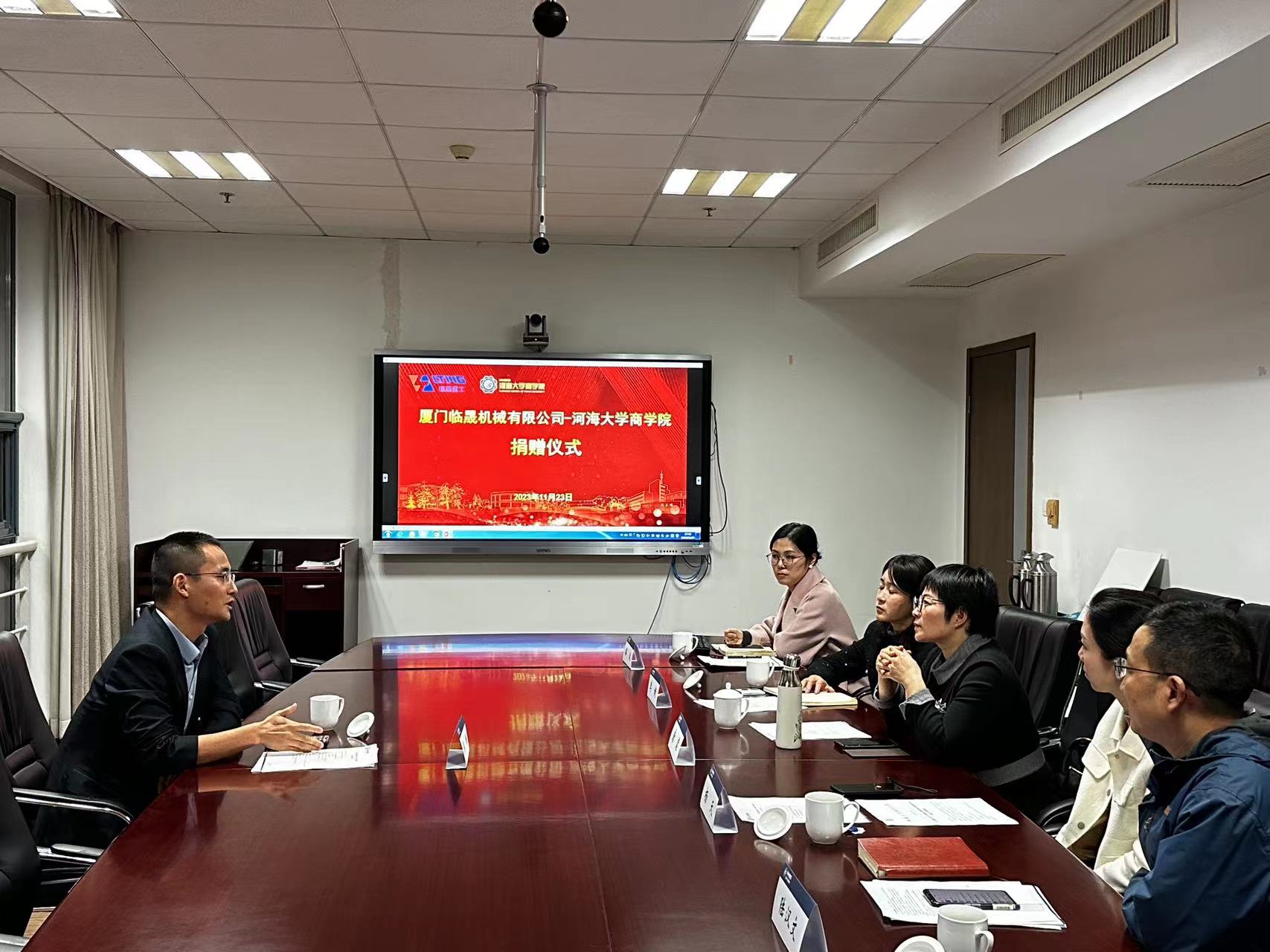 2023年11月23日,电影先生 2007级工商管理专业郭鹏校友创办的厦门临晟重工有限公司再次向电影先生 捐赠10万元设立“临晟奖助学金”,该企业已累计为学院捐赠20万元,捐赠仪式在电影先生 举行。电影先生 副院长唐震、党委副书记杨天、院长助理兼校友与合作发展办公室主任李婕、厦门临晟重工有限公司董事长郭鹏出席了捐赠仪式。捐赠仪式由学院校友与合作发展办公室行政主任陆汉文主持。