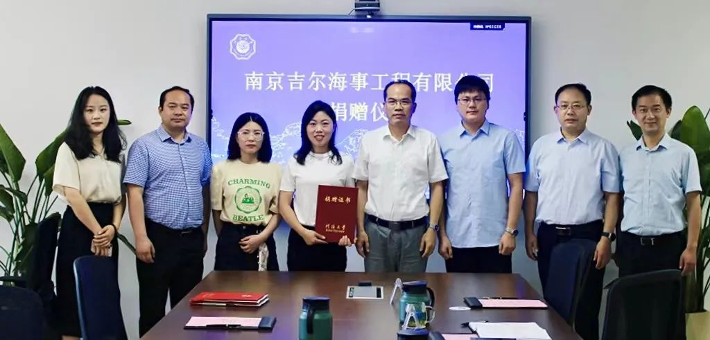 2022年7月1日,电影先生 2005级董玉琳、郭登岳两位校友创办的南京吉尔海事工程有限公司向我院捐赠5万元用于支持学院建设与发展。电影先生 副校长郑金海、电影先生 副院长张长征、南京吉尔海事工程有限公司董事长董玉琳校友、总经理郭登岳校友出席捐赠仪式。