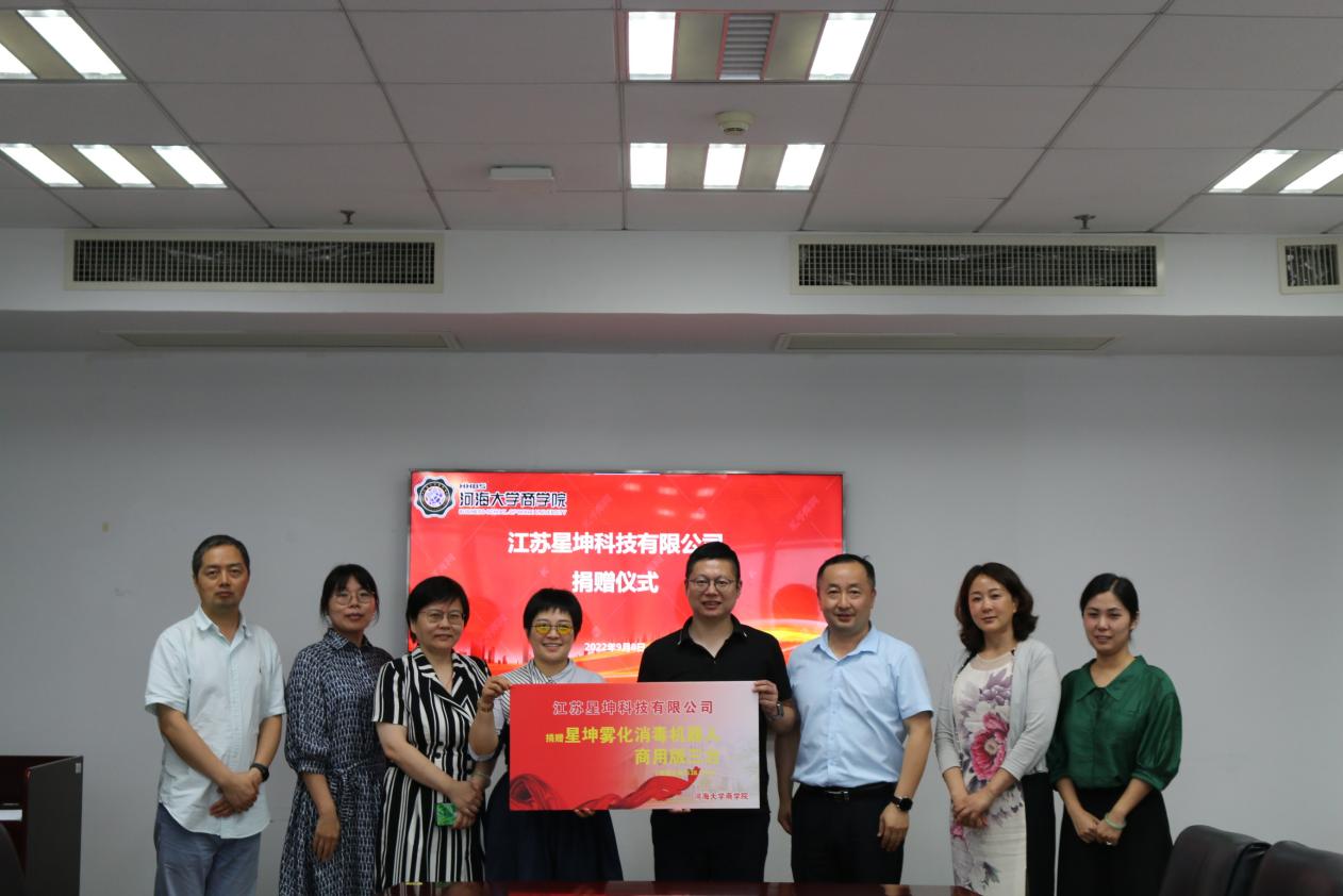 2022年9月8日下午,电影先生 2002级信息管理与信息系统专业校友戚松涛校友创办的江苏星坤科技有限公司向电影先生 捐赠消毒机器人并在电影先生 博学楼举行捐赠仪式。电影先生 副院长唐震、江苏星坤科技有限公司总经理戚松涛等出席捐赠仪式。