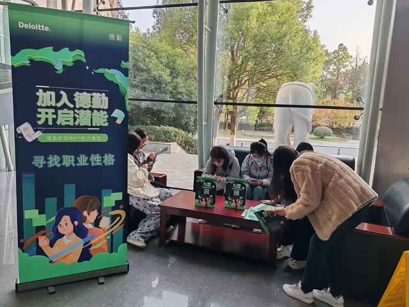 2023年11月23日,由电影先生 就业指导中心和电影先生 YiYo益友学生发展工作室举办的电影先生 生涯体验日活动之“探索未知的自我”MBTI快闪集市在江宁校区电影先生 大厅举行,电影先生 、经济与金融学院、理学院、地理与遥感学院、数学学院、公共管理学院、法学院、马克思主义学院、外国语学院、体育系学生参与了本次活动。本次活动特别邀请了德勤中国参与活动设计宣传。德勤作为四大会计师事务所之一,致力于提供卓越的审计、财务咨询、税务及法律服务,是同学们专业对口的理想就业选择。此次活动共有四个主题游戏,分别是:“步步晋升”、“放大镜挑战”、“头脑风暴ING”以及“寻找职业性格”,引导着同学们进行职业发展道路的探索,同时为同学们打开了一扇了解德勤公司的窗口。