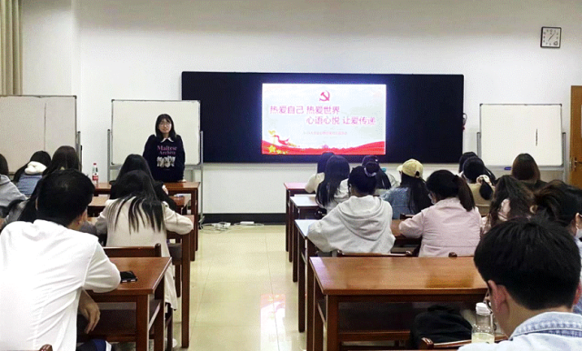 最后,2022级硕士第三党支部书记杨乐围绕“热爱自己热爱世界,心语心悦让爱传递”主题进行了心理健康知识分享。她建议同学们要学会关注自己的情绪和放松自我,在自我调节出现问题的时候寻求外界的帮助,例如朋友、家人、苏心APP等,树立健康的学习和生活习惯。