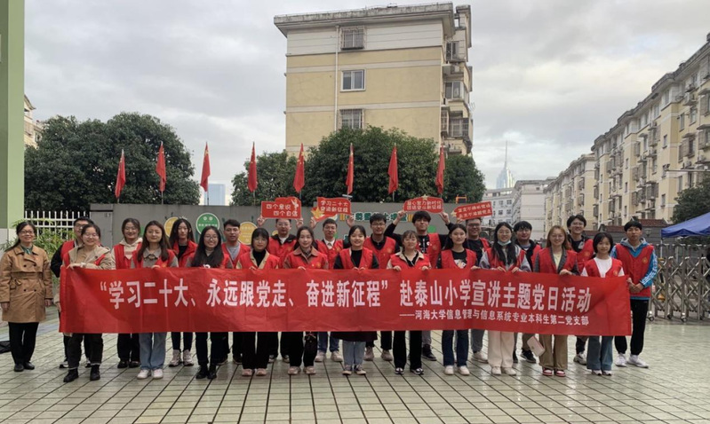 此次活动准备充分,支部以2人一组的形式,共分为12个小组,面向泰山小学三到五年级12个班级开展宣讲活动。党支部同志们自觉当好学习宣传贯彻党的二十大精神的表率,带领小学生们共同学习党的二十大报告,彰显了河海学子的精神风貌。