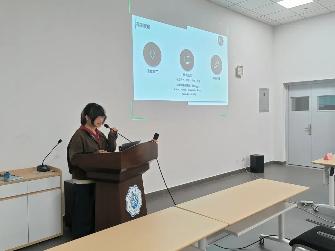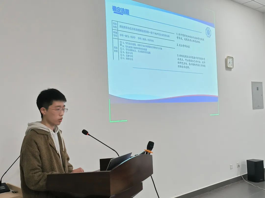 林欣雨同学从时间分配和人员配置等方面介绍了项目团队管理和项目成员分工的经验,并通过现场演示,展示了数据收集与期刊检索的具体流程,为同学们实施好大创计划提出了建议。