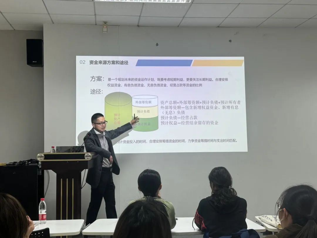 优秀校友、工商管理学硕士、中国注册会计师饶栋平老师作为主讲老师。饶栋平老师曾任会计事务所高级经理,财会理论与实践经验丰富,他就商业计划书的撰写和财务分析对营员们进行了系列指导。