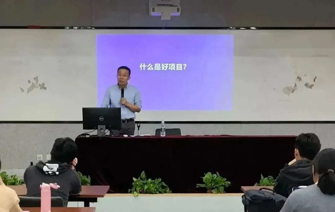 介绍完竞赛的基本背景后,袁猛老师将交流的重点转移到参赛主题和团队组建上。他通过分析学校往年的获奖成果,总结出一个好项目应当具备的三个要素:硬核科技、学校特色、发展大势。他还幽默地概括了组建团队的方法,指出营员们应当跨院组队、合纵连横、打不过就合作。袁猛老师强调,商院学生通常在团队中发挥着不可或缺的作用,鼓励营员们对参与创新创业大赛怀揣更大的自信。