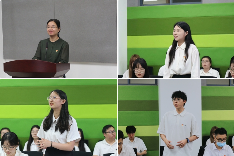 学生党支部青年党员代表分享了党纪学习教育开展以来的学、思、践、悟。2024届毕业生党员李林介绍了在党支部“周恩来纪念馆”研学活动中了解到的周恩来总理与密云水库的故事,分享了“水以清为贵,人以廉为尊”的道理,倡议青年党员要以先驱为榜样,时刻廉洁自律、持续艰苦奋斗。2021级青年党员戴烨姿作为学校大艺团成员参演了全国大艺展一等奖舞蹈作品《南水北调》,她分享了南水北调中杨小云等一代代河海校友在水利事业中的坚守、担当、作为。2021级青年党员邝素娴围绕“厚植廉洁文化,涵养清风正气”分享了李仪祉先生严于律己、廉洁奉公的一生,倡议青年党员树立责任心、保持平常心、争做好榜样。