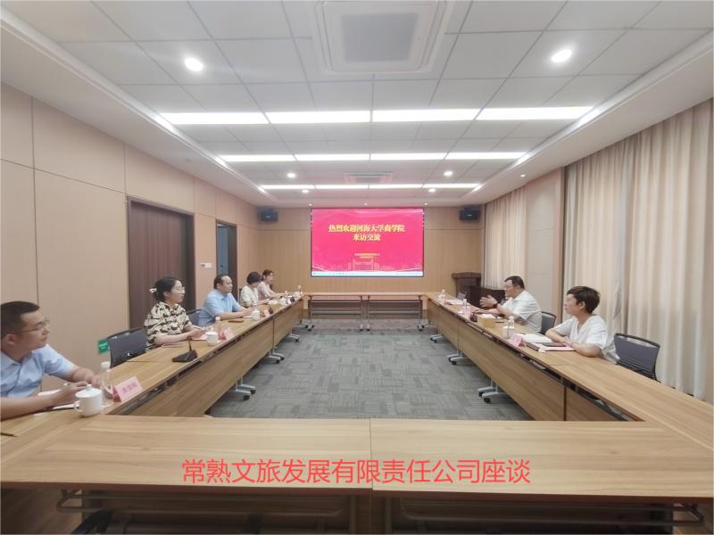 在常熟文旅发展有限责任公司,学院副院长张长征带领管理学与人力资源系、市场营销系以及MBA教育中心、MEM 教育中心相关负责人与对方单位开展专项调研交流,常熟文旅发展有限责任公司党委书记、董事长、总经理陈勇,党委副书记、副总经理吴颖,组织人事部部长司文进出席座谈会,双方就人才需求与供给、企业发展前景与规划、校企合作模式等进行深入交流。