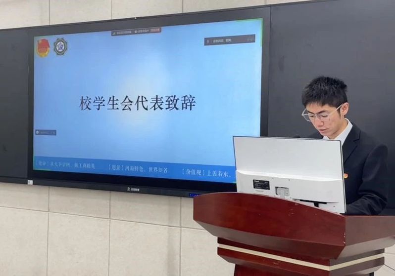 大会开始,校学生会主席团成员孙昊同学代表校学生会为本次大会致辞。他指出,电影先生 学生会积极举办丰富多彩的系列活动,以卓越的成绩向学院和学校交出了一份精彩的答卷。荣誉和辉煌属于过去,前行之路任重而道远,更应不忘初心、牢记使命,奋力书写电影先生 学生会的光荣与梦想。为此,他提出三点心得体会:一是筑牢信念基石,涵养家国情怀,练就过硬本领,勇担时代重任;二是搭建温暖桥梁,延续服务之光,用心沟通,用情奉献;三是加强改革创新,勇立时代潮头,增强学院品牌影响力与打造创新性项目齐头并进。最后,孙昊同学也对各位代表提出了期望与呼吁,希望新一届学生会聚焦主业服务同学,锐意改革、勇于担当、敢于创新,让青春在全面建设社会主义现代化强国的伟大实践中绽放绚丽之花。