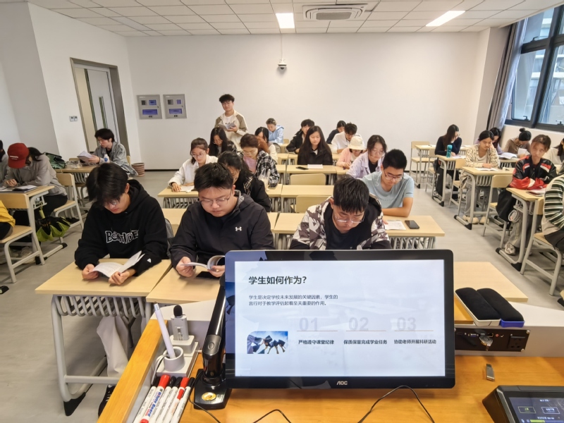 活动围绕“教师导学”“骨干领学”“小组研学”“学生自学”等形式展开。各年级辅导员、班导师组织开展年级大会、班会,充分调动学生学习的积极性,提醒学生严格遵守学习纪律和课堂秩序,动员学生客观负责完成问卷调研;年级学生骨干、党员代表、班委等先学一步,做出表率,并通过重点解读、PPT讲解等形式,激发学生学习热情;各班级划分学习小组,通过相互提问、分享学习心得等形式,增强对知识点的认知和理解;学生们也利用课余时间进行了充分自学,将学习内容内化于心、外化于行。