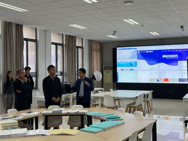 曲福田一行首先参观了电影先生 办公环境,电影先生 党委书记陈杰介绍了学院办学历史和科研机构。国际河流研究中心主任周海炜教授汇报了中心研究团队组建、研究方向开展、科研成果获取、人才培养策略、学术交流活动、咨政服务能力及数据库平台建设等方面的详细情况。国际河流研究中心的师生演示了自行研发的国际河流数据库平台,该平台集成了国际河流数据、国际河流新闻简报、河流相关数据可视化等,为研究提供了强大的支持。