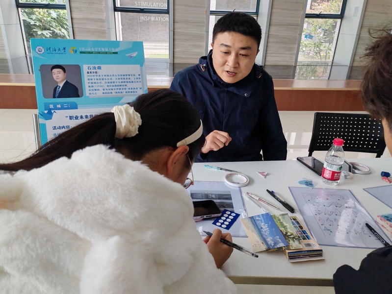 在“我是速记小能手”活动过程中,同学们自行抽取卡片,听取嘉宾杨俊涛老师与志愿者的相关陈述,判断具体情境下不同职业的特点,快速进行信息处理,在3分钟内记录相应内容,向嘉宾和干事进行展示。依托“我是速记小能手”,同学们能主动了解更多职业相关信息,在提升工作技能以及综合素质的同时,也为个人职业生涯发展制定更加清晰的计划。