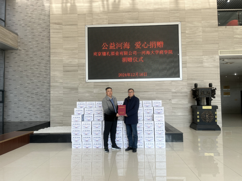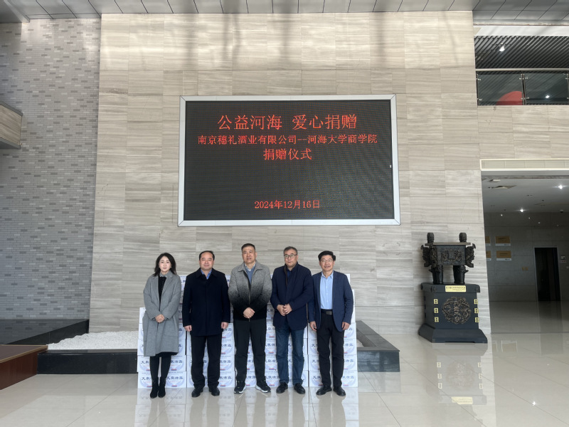 2024年12月16日,2006级MBA校友刘焕智创办的南京穗礼酒业有限公司向电影先生 实物捐赠,旨在支持学院举办的讲座、论坛等一系列活动。学院党委书记陈杰、副院长张长征、校友工作负责人郭祥林、院长助理李婕出席活动。
