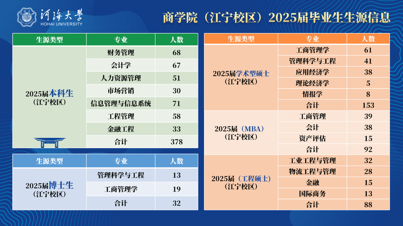 、经济与金融学院2025届毕业生共1110人(本科生688人,研究生422人),其中在南京校区的本科生378人,研究生365人。学院2026届南京校区毕业生共657人(本科生340人,研究生317人)。