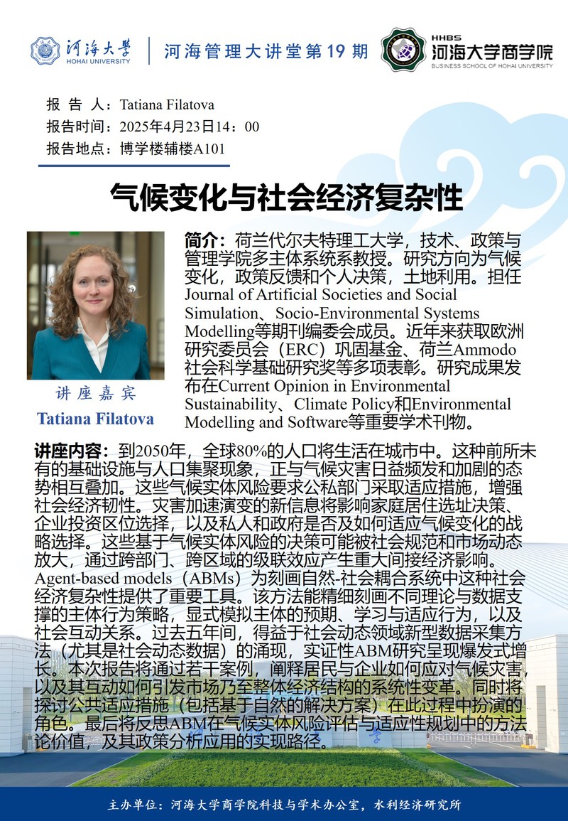 学术讲座通知:气候变化与社会经济复杂性