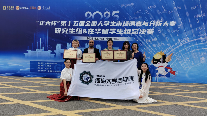 The national finals of the 15th Charoen Pokphand Cup National Market Survey and Analysis Competition concluded successfully on May 25th. After intense competition, students from our college achieved remarkable results in this national event. The project titled Gourmet Journey Along the Belt and Road: Consumer Analysis and Marketing Strategies for Imported Snacks from B&R Countries in the Chinese Market, jointly completed by undergraduate students Zheng Yu and Yu Boya, and graduate student MUSHREF MOHAMMED QASEM SAEED (an international student), won the First Prize in the International Student Category of the national finals. Another project, Focused on Knowledge, Committed to Payment: A Study on Generation Z's Product Preferences and Consumption Willingness on Knowledge Payment Platforms, by undergraduate students Xin Ziting, Xu Yinuo, and their teammates, also received the First Prize in the same category.